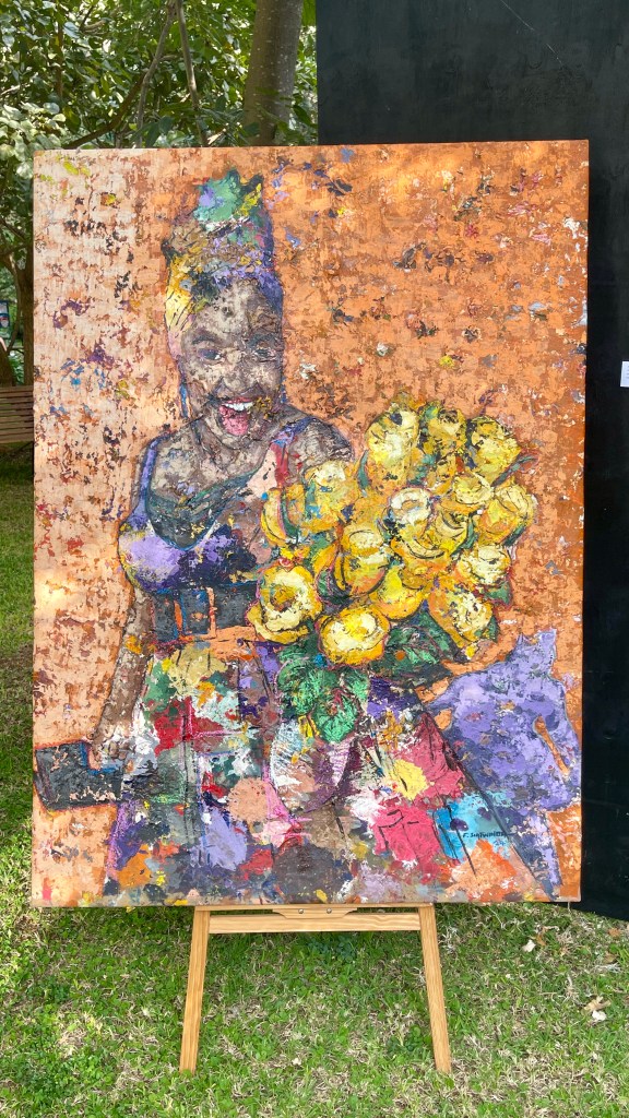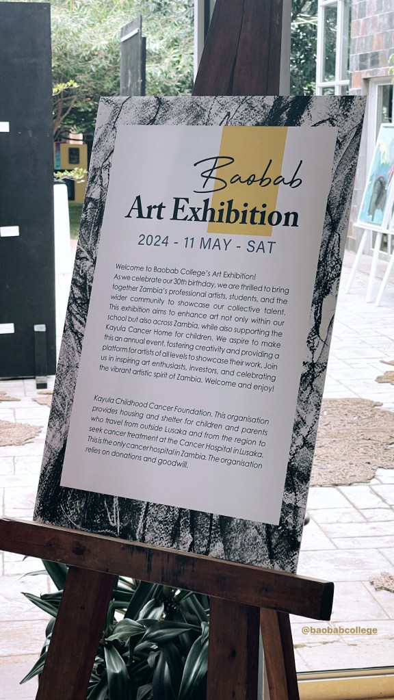 I joined a vibrant crowd of artists and college community members to admire the exhibit, which also served a wonderful purpose: supporting the Kayula Cancer Home’s mission to provide housing and shelter for families seeking treatment at the Lusaka Cancer Hospital.