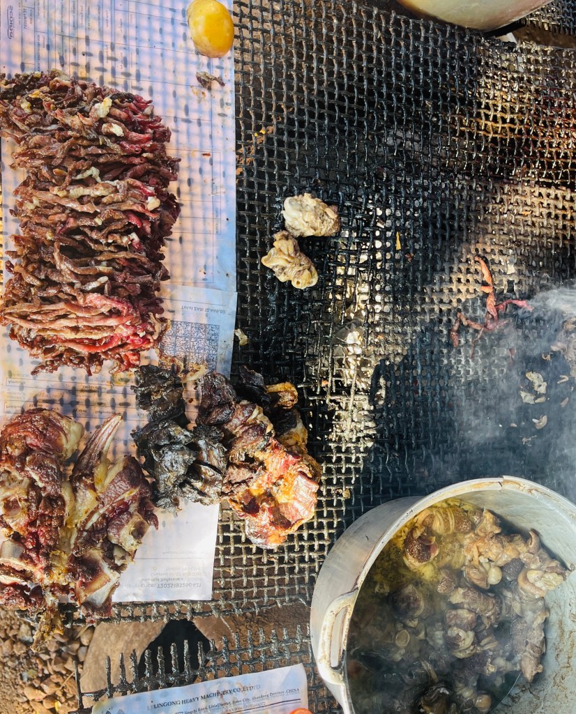 One of my favourite stops is at the Siavonga turnoff, where vendors serve succulent, smoky goat meat skewers alongside salsa and amatumbo (offal and tripe). This roadside indulgence is a real taste of Zambian cuisine’s soul: simple yet delicious and satisfying.